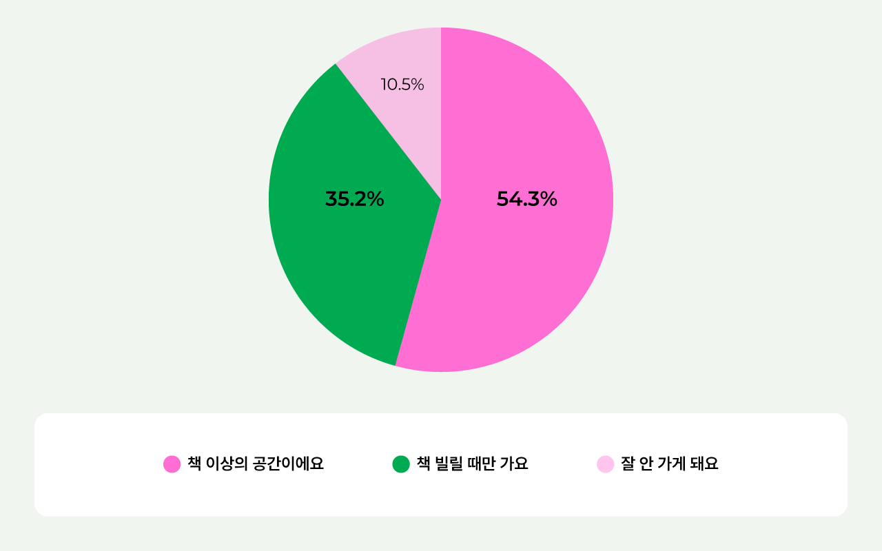 🥈 책 빌릴 때만 가요: "조용히 책만 빌리고 나오는, 딱 그 정도의 공간이에요." (35.2%)