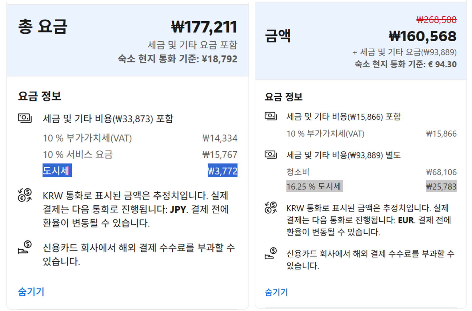 ์๋ฐ ์์ฝ ์ ์ธ๋ถ ๋ด์ญ์ ๋ณด๋ฉด ๋์์ธ(City Tax)๊ฐ ํฌํจ๋์ด ์์ด์. ๊ตํ ์ ํ๋ฆฌ ์๋ฐ ์์ฝ์ฐฝ์ ๋ชจ์ต โ๋ถํน๋ท์ปด