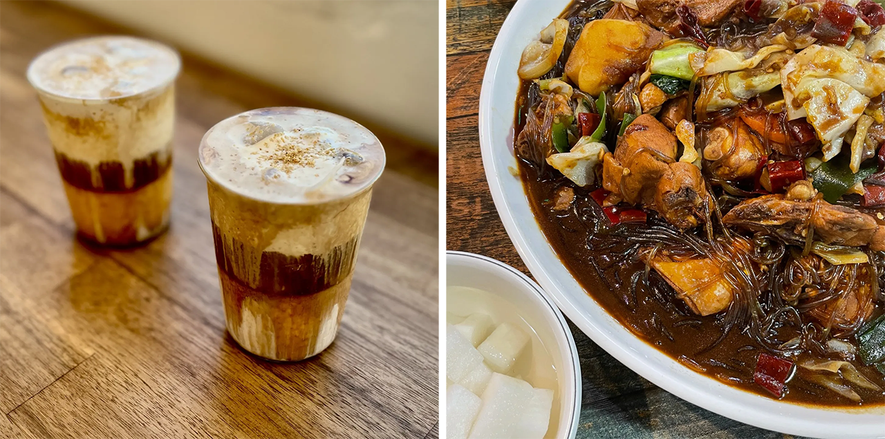 ์ํ๊ตญ์ ์กฐ์ ์๋ ์ฌ๋๋ค์ด ์ปคํผ๋ฅผ ๋ถ๋ฅด๋ ์ด๋ฆ์ด๋์. ์‘์’์์ ๋ค์ด์จ ‘ํ’์ฒ๋ผ ๋์ฌ ๋ง์๋ ‘๊ตญ’์ด๋ผ๋ ๋ป์ด์ฃ . ๊ณ ์ข ํฉ์ ๋ ์ฆ๊ฒจ ๋ง์ จ๋ค๋ ์ปคํผ๋ฅผ ์ ํต ๋ฐฉ์ ๊ทธ๋๋ก ๋ง๋ณผ ์ ์์ด์. ์ถ์ถ ๋ฐฉ๋ฒ์ ์ง์ ๊ณ ๋ฅด๋ ์ํ๊ตญ๊ณผ ์กฐ์ ์๋์ ์ํฌ๊ฐํ , ์ํ๊ตญ ์ง์ก์ผ๋ก ๋ง๋ ‘์ฐจ์ฝ๋ ์ํธ’๊น์ง๋์ค๋ ์ด๋ฆ๋ถํฐ ์ฌ๋ฏธ์๋ ‘์ ์ฃ๊ฑฐ๋ฆฌ ์ฝ์ค’๊ฐ ์ธ๊ธฐ ๋ฉ๋ด๋๋๋ค.