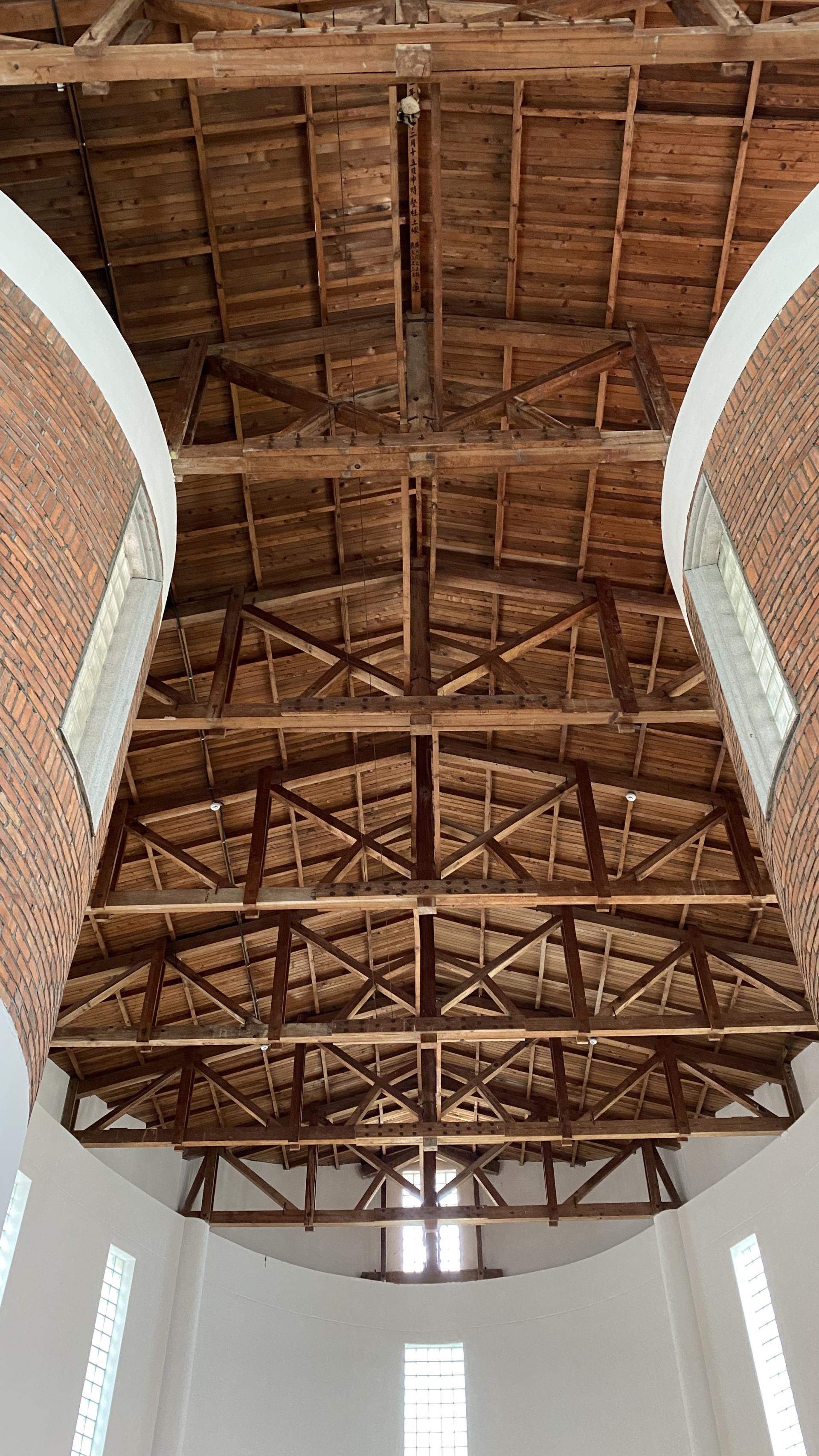 구정아트센터의 지붕은 거북선을 모티프로 디자인 되었다고 해요. 이순신 장군의 고향이 충남 아산이기에 그 의미를 더했다고 합니다. 내부에 들어가면 본관에 이어 또 한 번 예상하지 못한 공간이 펼쳐집니다. 높은 층고와 은은하게 들어오는 빛에 먼저 놀라고, 배의 갑판 아래인 듯 한옥의 지붕인 듯 오묘한 아름다움에 감탄하게 되어요. 곳곳에 한옥의 요소가 숨겨져 있어서 그것을 찾고 의도와 의미를 유추해 보는 즐거움도 있습니다.