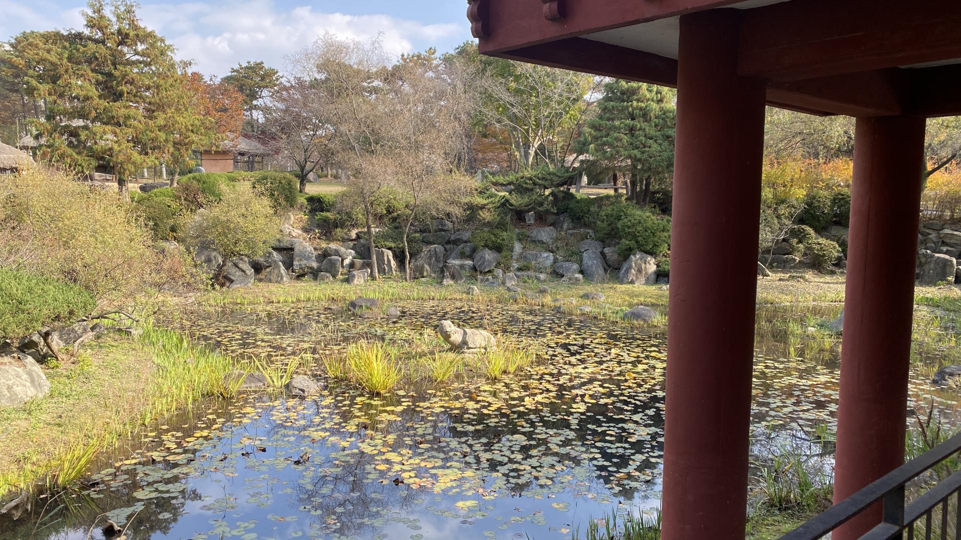 박물관의 가장 매력적인 부분은 이 모든 것을 품고 있는 뜰이에요. 드넓은 뜰을 산책하다 보면 커다란 정자와 연못 그리고 너와집도 볼 수 있어요. 카페 앞에는 자그마한 야외무대도 있습니다. 때때로 작은 공연을 하기도 하고 볕 좋은 날에는 아이들이 뛰어놀고 있어요. 그 모습을 보다 보면 이런 곳이 있음에 감사한 마음이 듭니다.