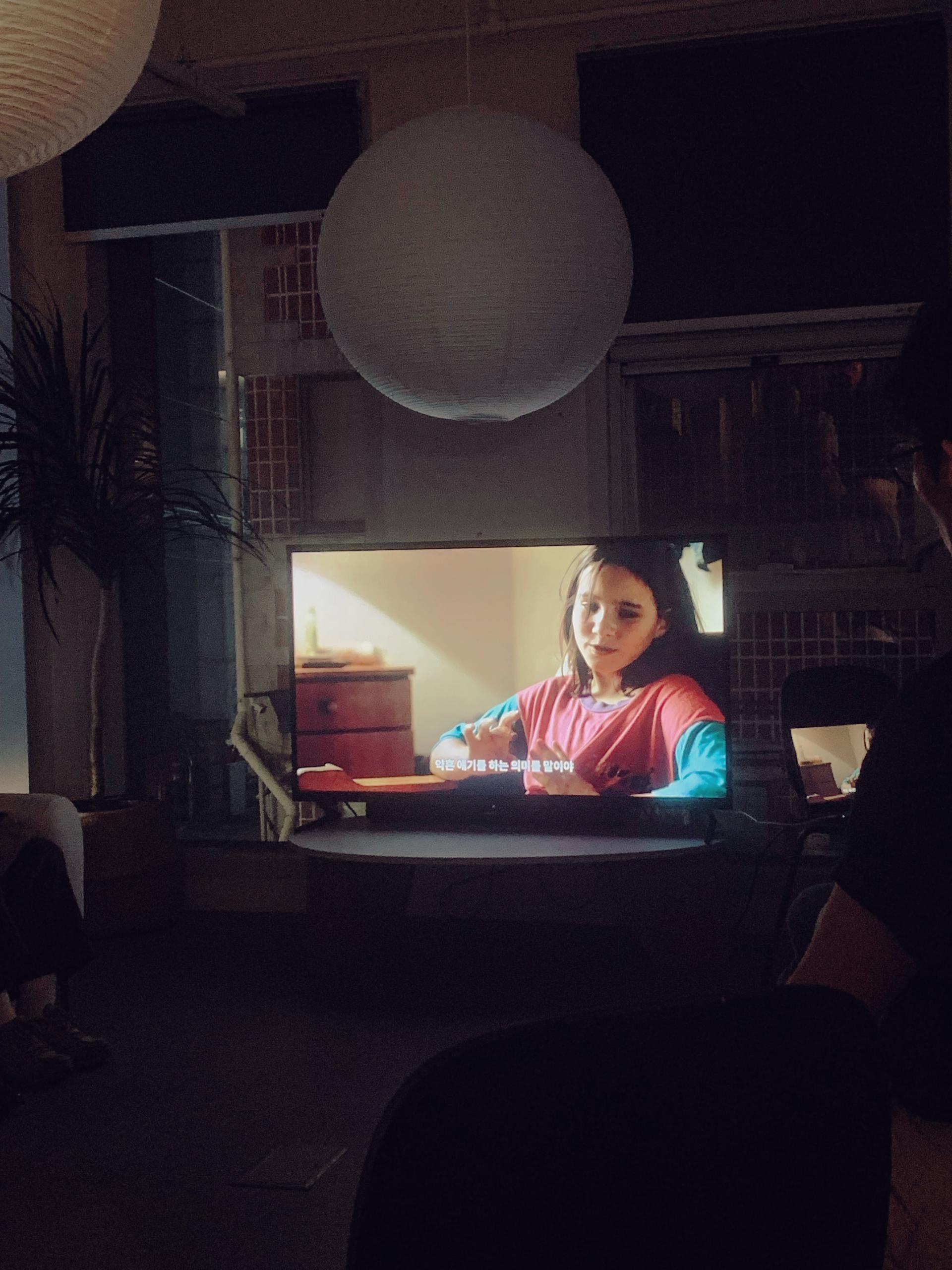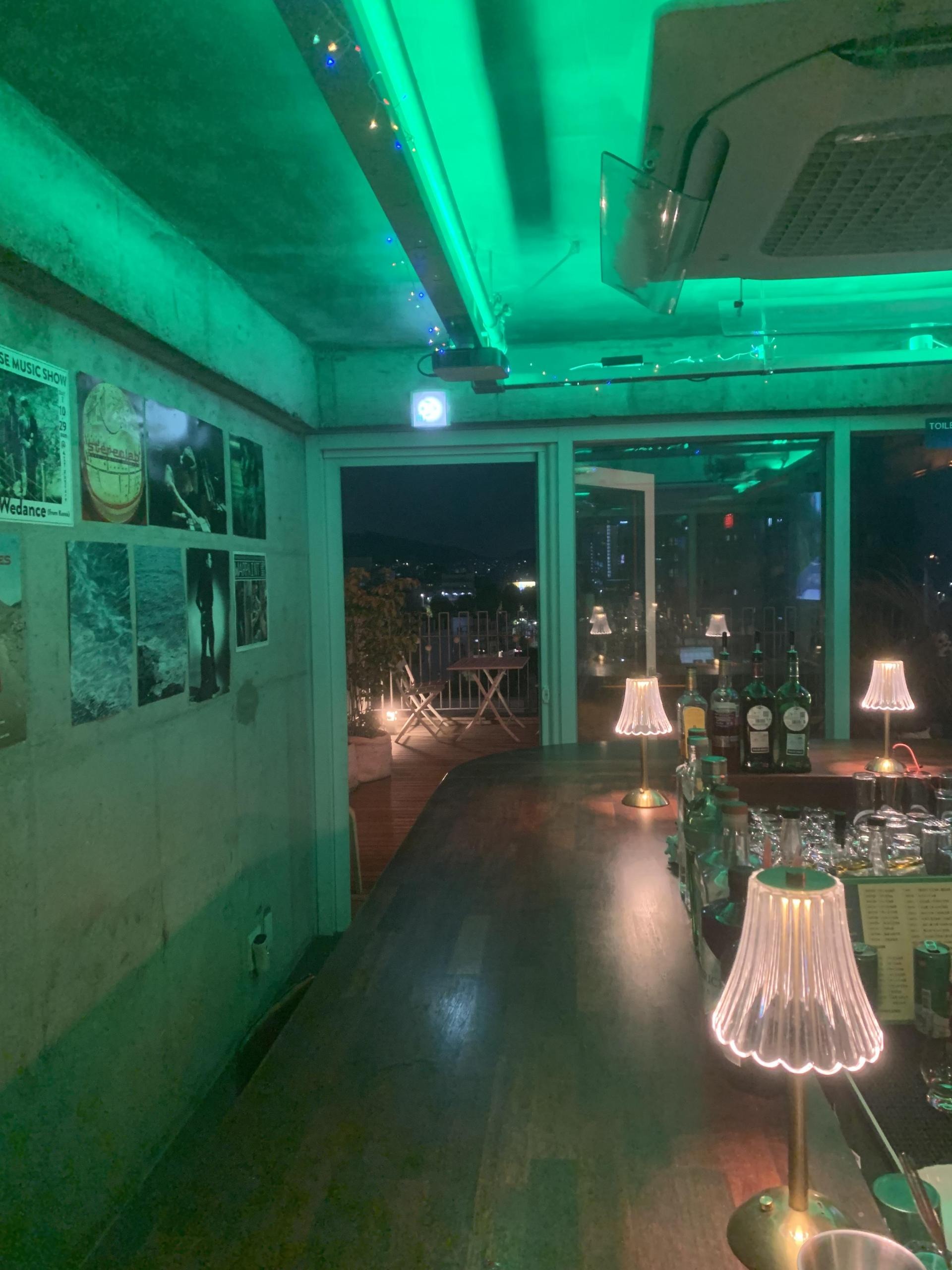 ๊ฐ์ ๊ฑด๋ฌผ์ ๋ฃจํํ์ผ๋ก ์ฌ๋ผ๊ฐ๋ฉด '์ฌ์ด์์ฌ'์ด๋ผ๋ ์นตํ ์ผ ๋ฐ๊ฐ ๋์จ๋ค. ์๋ก์ด ์ธ์์ ์จ ๋ฏํ ์๋ํ ์นตํ ์ผ๋ฐ ๋ด๋ถ๋ ์์ ๊ด๋ จ ํฌ์คํฐ์ ์กฐ๋ช ์ผ๋ก ์ฅ์๋์ด ์๊ณ , ํ์ชฝ ๋ฒฝ๋ฉด์๋ ํด์ธ์์ ์ฐจ๋ฅผ ํ๊ณ ๋ฌ๋ฆฌ๋ฉด ๋ณด์ด๋ ํ๊ฒฝ ์์์ด ๋์จ๋ค. ํ ๋ผ์ค๋ก ๋๊ฐ๋ฉด ์๋ฌผ๊ณผ ์กฐ๋ช ์ผ๋ก ๊พธ๋ฉฐ์ง ๊ณต๊ฐ์ด ํผ์ณ์ง๊ณ ์ฅ์๋์ ๋๋ค์ ๊ฑด๋ฌผ๋ค์ ํ๋์ ๋ณด๋ฉฐ ์ฝ๊ฐ์ ํด๋ฐฉ๊ฐ์ ๋๋ ์ ์๋ค. ์ฅ์๋์ ๊ฐ๊น์ด์ ๋ณด๋ฉด ์ค๋๋ ๋๋ค ๊ฐ์ง๋ง ๋ฉ๋ฆฌ์ ๋ณด๋ฉด ๋๋ฆ ๊ณ ์ฆ๋ํด ๋ณด์ธ๋ค๋ ์๊ฐ์ด ๋ ๋ค.
