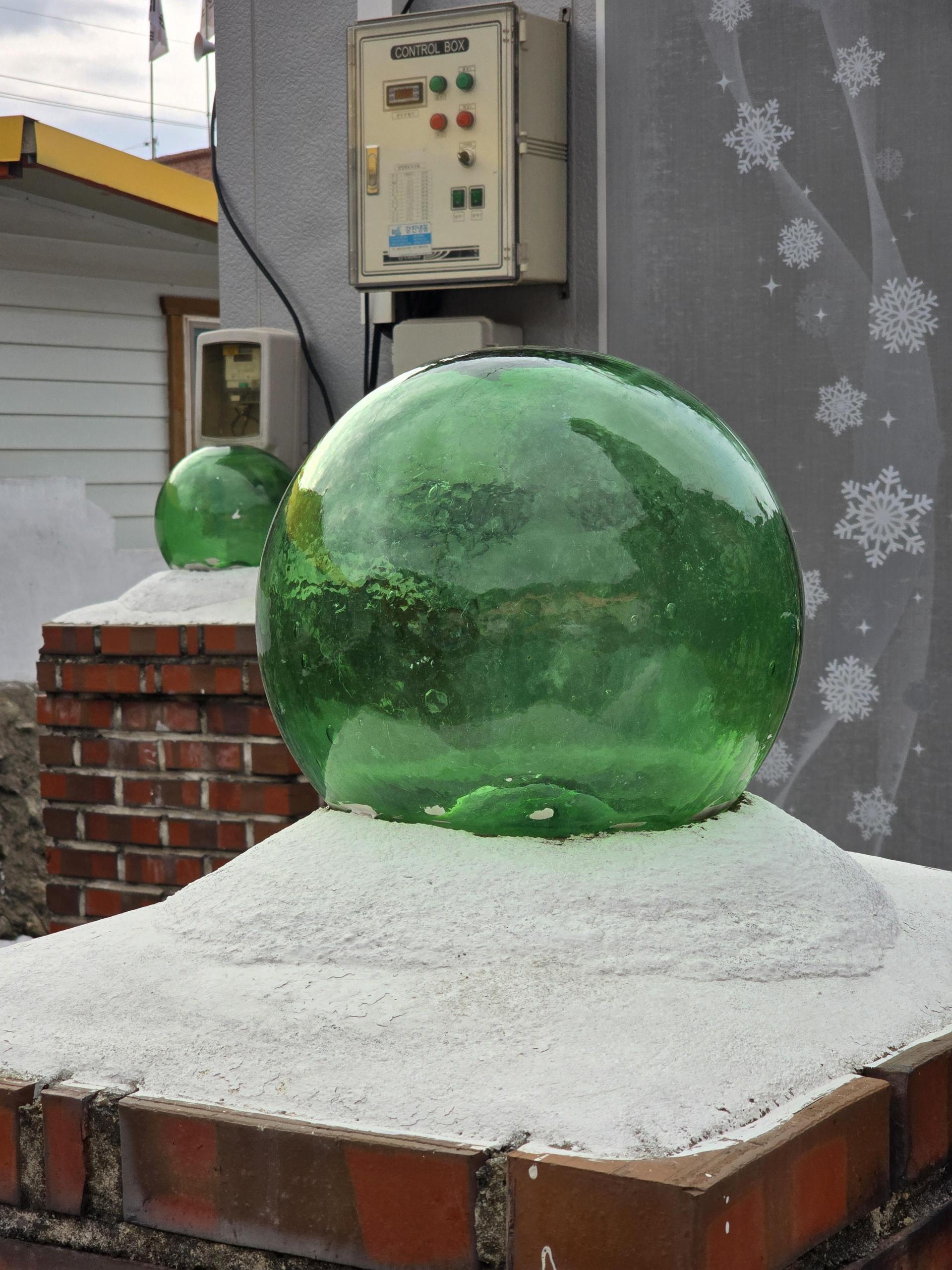 위도의 마을을 돌아다니다 보면, 흔하게 볼 수 있는 대문 장식이 있는데요. 커다랗고 둥근 모양에 푸른색 초록빛이 나는 게 특징인데, 집마다 왜 있는 것일까? 너무 궁금하더라고요. 주민들에게 물어봐도 “그냥 장식이지, 의미는…. 없어 인제 만들면 되지 허허”라고 농담이 오갈 뿐이었어요. 하지만 열심히 검색한 끝에 정체를 알게 되었는데요. 바로 ‘유리 부표’라는 것이었어요!