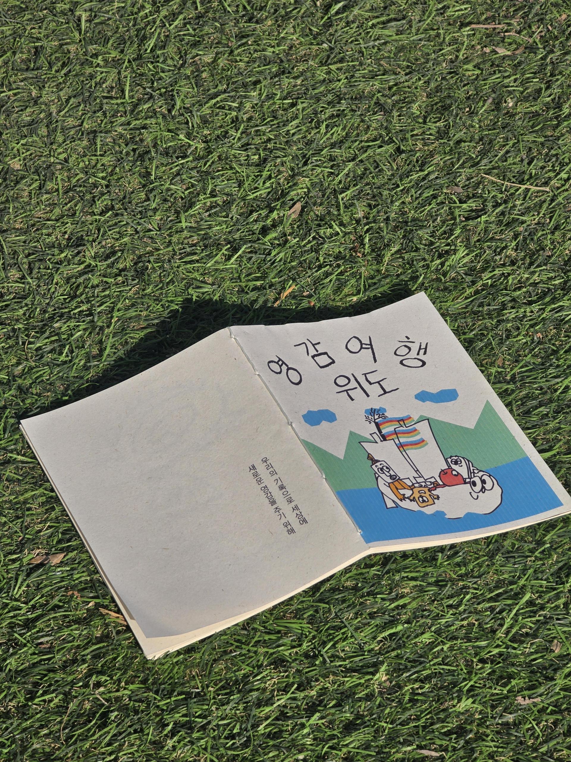 배 항해를 위해 사용하는 물건인데, 지금은 플라스틱과 스티로폼 부표를 많이 사용한다고 해요. 하지만 예전에는 유리 부표를 사용했고, 더 이상 사용하지 않는 것을 대문 기둥에 올려 장식으로 이용하는 문화가 생겼다고 합니다. 참으로 재밌고 반짝이는 마을 모습이었어요. 부안은 제가 처음 겪는 것들과 영감들로 넘쳐나는 것 같아요. 발견한 영감들을 가만둘 수 없어서, 기록하고 창작하는 활동까지 하고 있어요. 주로 글로 정리하고 있는데 위도에서 받은 영감을 소책자로 만들어보기도 했답니다.